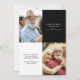Modern death announcement card with photo collage and custom text offers a warm and respectful way to notify friends and family of a loved one’s passing. This professionally designed card features a four-panel layout with space for two full-color photos, the individual's name, birth and passing dates, and a short tribute message. The reverse side provides space for a formal death announcement, including details of a memorial service, surviving family members, or any other information. The combination of black and white backgrounds with classic serif typography adds a timeless and elegant touch. Ideal for mailing or sending digitally to extended family, friends, or members of the community, this customizable death notice card is a meaningful way to honor someone's memory with clarity and care while sharing important details with those who knew them.