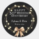 A matching Classic Round Sticker for your Elegant Modern 50th Anniversary Party Invitations. This sticker is designed with a gold colored wreath with bright lights, on a black background with with lettering. The text includes: Happy 50th Wedding Anniversary, The Couple's First Names, and The Anniversary Date. To personalize, simply insert your text into our easy template, replacing the sample.