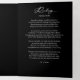This elegant memorial program features a sophisticated black background with elegant white cursive and serif fonts, creating a timeless and respectful tribute to your loved one. The front cover displays a heartfelt "In Loving Memory" message alongside a beautiful photo of the departed, framed by tasteful typography that highlights their name, dates of life, and a touching remembrance quote or other text. Inside, the layout is thoughtfully organised with sections for the order of service, obituary, acknowledgements, and a meaningful reading or prayer, providing space to honour cherished memories, life achievements, and personal tributes. The inclusion of a photo collage adds a personal touch, showcasing precious moments that celebrate the individual's life. This customisable program offers a dignified and loving way to commemorate and share the story of someone dearly missed.