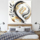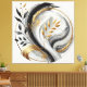 This modern abstract canvas print exudes elegance and simplicity, with a striking combination of black, white, and gold tones. The bold contrast of the monochrome background is beautifully complemented by subtle botanical elements, offering a serene yet sophisticated aesthetic. The gold accents add a touch of luxury, effortlessly elevating the piece while maintaining its minimalist charm.