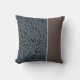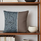 This throw pillow features an exquisite design with abstract line art in black, set against a backdrop of mineral green, grey, and medium taupe in an elegant pattern. Two thirds of the pillow front features a pattern of flowing, black, calligraphic-like lines against a muted teal-grey background. These lines curve and intertwine, creating an abstract and artistic effect that contrast nicely with the solid, muted brown on the final one third of the pillow cover. Separating the two sections is a thin, vertical stripe of off-white or very light grey. The colour palette is subdued, with the teal-grey and brown providing a sense of calm and sophistication. The black lines add a contrasting element, while the white stripe offers a subtle visual separation. The overall composition is balanced and aesthetically pleasing, with the pillow's design creating a modern and stylish look. It is a versatile and stylish accessory that can be used in various settings, such as a living room, guestroom, bedroom, family room, or office space. This chic and artistic piece will undoubtedly enhance your modern decor and add a touch of style and sophistication to any room.