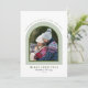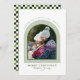 Elegant modern Christmas card with an arch family photo design and a green and white retro check back. A bright, minimalist holiday card that’s easy to personalise with your photo and message for a stylish, timeless keepsake.