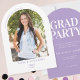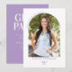 Let your guests know about the upcoming graduation celebration with this Elegant Modern Arch Photo Lilac Graduation Party Invitation. Sophisticated yet simple with lavender lilac text on front and solid back with white text on back makes this invitation announcement fun and stylish. The photo of the graduate on the front in a modern arch shape with elegant curved text beckon guests 'Let's Celebrate the Graduate' while the back has party invitation details. Dominant modern retro type is paired with an accent of modern calligraphy for the 'Class of' typography for visual interest with a modern twist.