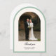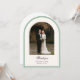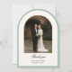 Celebrate your wedding in style with this Elegant Modern Arch Photo Wedding Thank You Card. Featuring a chic arch-shaped design, this card showcases your favorite photo within a custom-colored frame (change color in design tool if needed) that beautifully complements your wedding color palette and chosen wedding photo. The front highlights elegant calligraphy script, creating a sophisticated and timeless look, while both the front and back offer fully customizable text templates, allowing you to add your personal message of gratitude. The custom arch-shaped photo template ensures your image fits perfectly, making each card uniquely yours.