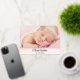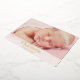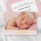 An elegant modern birth announcement card featuring real foil overlay in your choice of gold, silver or rose gold. Upload your own photo to create a unique card celebrating your new baby girl. To complete simply customise the name, date and birth stats, and add a personal message.