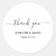 Elegant custom black and white wedding thank you stickers featuring a modern script font. Matching items available.