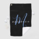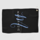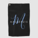 Elegant Modern Black Blue Script Monogram Golf Towel