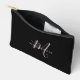 Elegant Modern Black Blush Pink Script Monogram Accessory Pouch