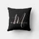 Elegant Modern Black Blush Pink Script Monogram Cushion