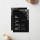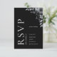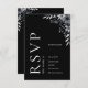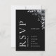 This elegant wedding RSVP card features a timeless black background accented with soft botanical floral elements, creating a refined and romantic look. The clean layout is enhanced by graceful script typography paired with modern serif text, offering a perfect balance between classic elegance and contemporary style. Subtle floral corners frame the design without overpowering the content, making it ideal for formal weddings, black-tie events, and sophisticated celebrations. Designed to be easily customizable, this RSVP card suits a wide range of wedding themes, from modern minimal to classic luxury.