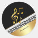 Elegant Modern Black Gold Music Notes,Piano Keys Classic Round Sticker