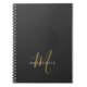 Elegant Modern Black Gold Script Monogram notebook. An elegant gold script monogram combined with a clean white san-serif font makes for a contemporary look.