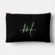 Elegant Modern Black Green Script Monogram Accessory Pouch