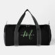 Elegant Modern Black Green Script Monogram Duffle Bag