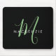 Elegant Modern Black Green Script Monogram Mouse Mat