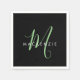 Elegant Modern Black Green Script Monogram Napkin