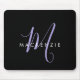 Elegant Modern Black Lavender Script Monogram Mouse Mat