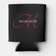 Elegant Modern Black Red Script Monogram Can Cooler