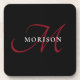 Elegant Modern Black Red Script Monogram Coaster