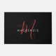 Elegant Modern Black Crimson Red Script Monogram Doormat. An elegant gold script monogram combined with a clean white san-serif font makes for a contemporary look.