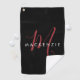Elegant Modern Black Red Script Monogram Golf Towel. An elegant red script monogram combined with a clean white san-serif font makes for a contemporary look.