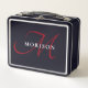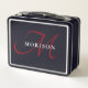 Elegant Modern Black Red Script Monogram Metal Lunch Box