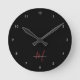 Elegant Modern Black Red Script Monogram round clock. An elegant red script monogram combined with a clean white san-serif font makes for a contemporary look.