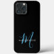 Elegant Modern Black Sky Blue Script Monogram Case-Mate iPhone Case