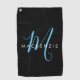Elegant Modern Black Sky Blue Script Monogram Golf Towel