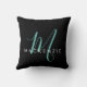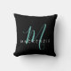 Elegant Modern Black Teal Script Monogram Throw Pillow.