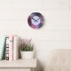 Elegant Modern Blue Black Pink Space Landscape Round Clock