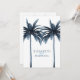 Palm Trees formal wedding invitation. Two elegant blue palm trees form part of the canopy over the Bride and Grooms names.