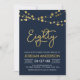 Elegant 80th Birthday Party invitation featuring strings of lights and the word "Eighty" in faux gold against a dark blue background. Card includes a matching polka dot pattern back side. Check out other matching items here https://www.zazzle.com/collections/strings_of_lights_faux_gold_celebration_collection-119311942951401241?rf=238364477188679314