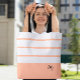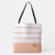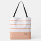 Elegant Modern Bold Stripes Monogram Trendy Peach Tote Bag