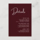 Elegant & Modern Burgundy Wedding Details Enclosure Card is designed to beautifully guide your guests while maintaining a refined and cohesive wedding aesthetic. The deep burgundy tone conveys warmth, romance, and sophistication, instantly elevating your wedding stationery suite. Its clean, modern layout ensures important information like venue details, schedules, and special notes are easy to read without feeling cluttered. Thoughtfully chosen typography and balanced spacing give the card a timeless appeal that works effortlessly with classic, formal, or contemporary weddings. Perfect for couples who value both elegance and clarity, this wedding details enclosure card transforms essential information into a stylish keepsake that complements your invitations and leaves a lasting impression.
