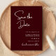 Elegant & Modern Burgundy Wedding Save the Date is crafted to announce your celebration with style, warmth, and confidence. The rich burgundy color creates a romantic and sophisticated first impression, while the clean, modern layout keeps the design timeless and easy to read. Carefully arranged typography highlights your names and wedding date, ensuring your guests remember the moment that matters most. This save the date card pairs beautifully with classic, formal, or contemporary wedding themes, making it a versatile choice for any season or venue. Perfect for couples who want their wedding stationery to feel refined yet approachable, this design sets the tone for an elegant celebration and gives your guests a beautiful reminder of your upcoming special day.