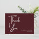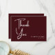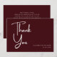 Elegant & Modern Burgundy Wedding Thank You Card is a thoughtful way to close your wedding story with warmth and style. Inspired by the richness of burgundy, this design captures a sense of romance and appreciation while maintaining a clean, modern look that feels timeless. The carefully spaced layout and refined typography allow your message of thanks to feel personal, sincere, and easy to read. Its versatile aesthetic pairs beautifully with classic, formal, and contemporary weddings, making it a seamless match for your overall wedding stationery suite. Created for couples who want their gratitude to feel just as special as their celebration, this thank you card leaves guests with a lasting impression of elegance and heartfelt appreciation.