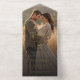 Rustic photo wedding invitations with real gold foil script offer an elegant and modern way to announce your celebration with timeless charm. Featuring luxurious metallic calligraphy across the top and classic serif text beneath, this vertical design balances contemporary styling with vintage-inspired sophistication. The rich gold foil detailing adds a touch of glamour to the overall minimalist layout, making it ideal for fall weddings, boho ceremonies, or romantic outdoor events. Matching RSVP details with a scannable QR code and coordinated envelope printing create a seamless and stylish invitation suite. Perfect for couples looking for a customisable wedding invitation with upscale flair and cohesive design.