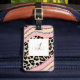 Elegant Classy Modern Pretty Cheetah Design luggage tag with Pink and Pastel Yellow Lines. . Perfect gift for her, friend, sister, mother. Able to edit and personalise your Name on. More designs are available in my store. Made by cmK.store.
