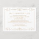 Vintage elegance ornate swirl frame design in gold colour on Editable white background. Damask pattern with monogram design on the back, modern, elegant and classy, perfect for vintage wedding, art deco wedding all year round. Editable background colour to match your wedding theme colours. Customise your own accommodation card for your wedding invitation set.