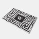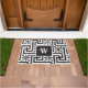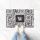 Elegant modern classy style black and white monogram doormat. A design of greek key black and white, extra beautiful with the black floral. Very classy with black border in the middle of the doormat. Initial W and american surname Wilson. Here you can change image and write your own name.