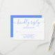 A simple elegant cornflower blue signature script RSVP card with your details set in chic typography. Designed by Thisisnotme©