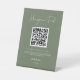 Elegant & modern Dark sage Honeymoon fund QR code Pedestal Sign