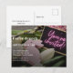 A modern Easter design featuring a pale pink bunny figurine with white tulips and a black plaque with neon pink You're invited! script typography. Send this postcard to your friends and family and invite them to a tasty Easter Brunch. Just add your details to the card; there's also space for an additional message on the back.