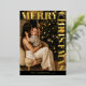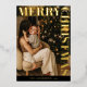 Elegant Modern Family Photo Black Merry Christmas Foil Holiday Card