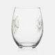 Elegant Modern floral Bird Overlay Flowers wedding Stemless Wine Glass