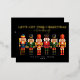 Add a touch of festive sparkle to your holiday greetings with our Elegant Modern Funny Black Nutcracker Christmas Foil Holiday Card. Designed with a row of 6 colourful and quirky Nutcrackers against a crisp white background, this christmas card is both playful and stylish. The phrase "Let's get this Christmas Cracking" shines at the top, with "Let's get this Christmas" elegantly rendered in foil text and "Cracking" in a graceful script font, adding a sophisticated flair to the humour.