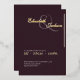 Elegant Modern Formal Plum Noir Wedding Gold Foil Invitation. This elegant plum wedding invitation features luminous gold foil names paired with a contemporary layout and clean architectural details. Designed for evening ceremonies and black-tie celebrations, the minimalist composition highlights the couple’s names with timeless sophistication while maintaining clarity and balance.