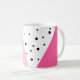 Girly design featuring baby pink faux leather, hot pink colour block and black dots.
