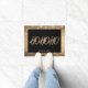 Beautiful HO HO HO Christmas doormat in classic black and faux gold texture. Add your family name at the bottom.